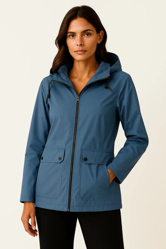 Women's Utility Jacket Gray Adjustable Fit with Hood and Zipper Pockets