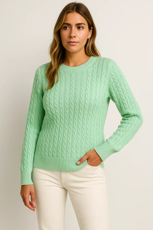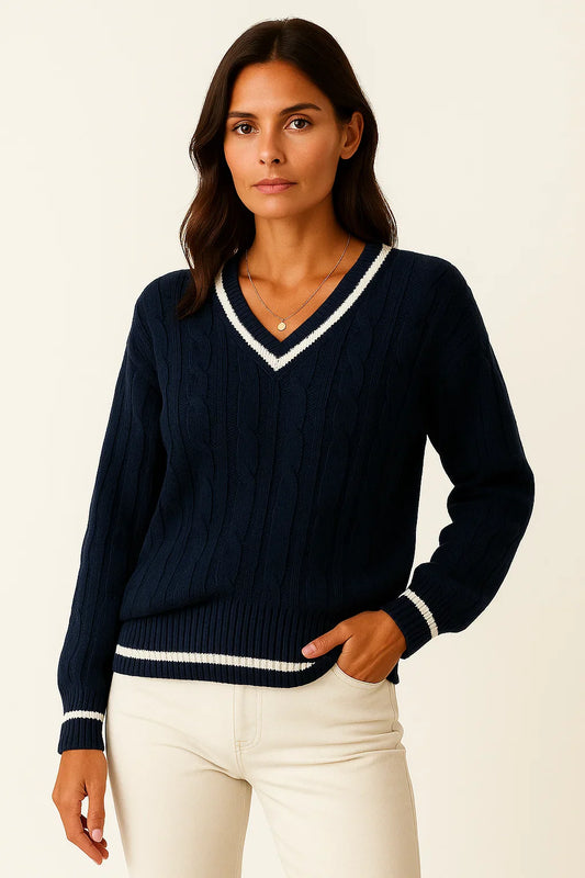 Women's Sweater Cable Knit Striped V-Neck Soft Blend Slim Fit