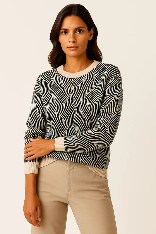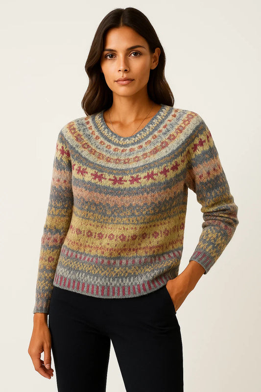 Women's Sweater Multicolor Wool Blend Round Neck Casual Fit Ethnic Pattern
