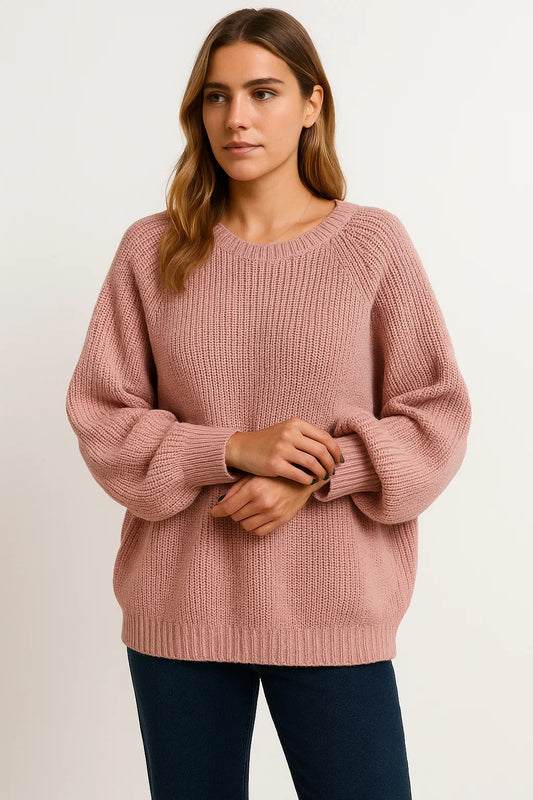 Women's Sweater Gray Loose Fit Soft Casual Style Ribbed