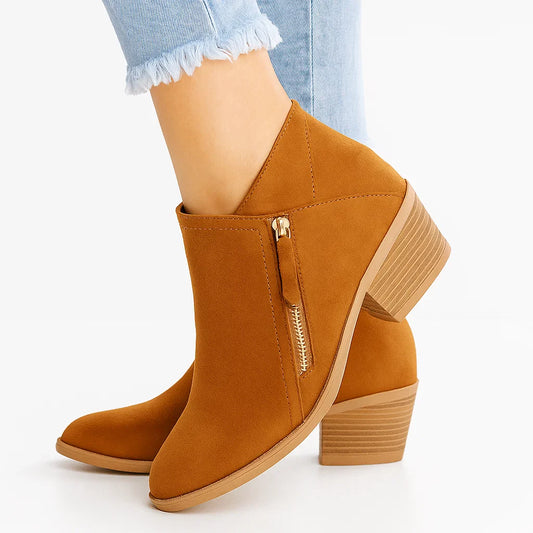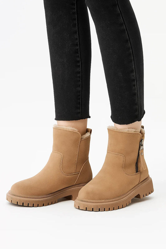 Women's Boots Beige Suede Chunky Sole Zipper Warm Interior Comfort