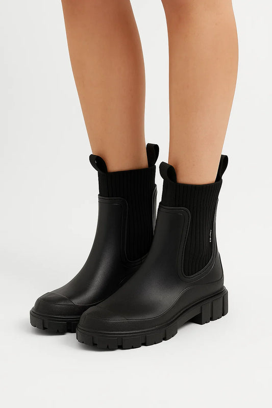Women's Black Waterproof Boots PVC Mid-Calf Casual Comfort