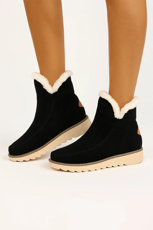 Women's Black Ankle Boots Microfiber Slip-On Flat Sole Winter-Friendly