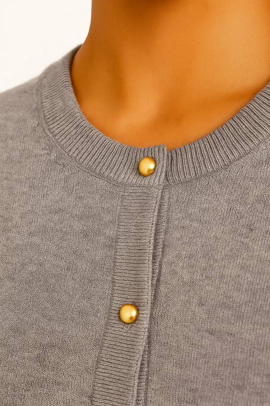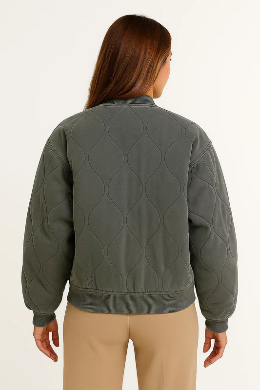 Women's Cardigan Grey Polyester Quilted Modern Design With Pockets