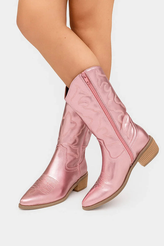 Women's Cowboy Boots Metallic Elegant Western Design High Quality Pointed Toe Comfortable Insole