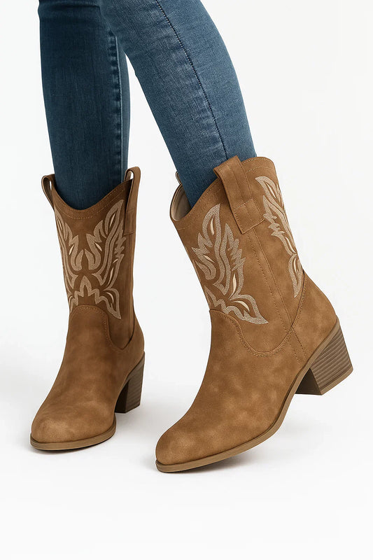 Women's Cowboy Boots Imitation Suede Block Heel Round Toe Western Boots