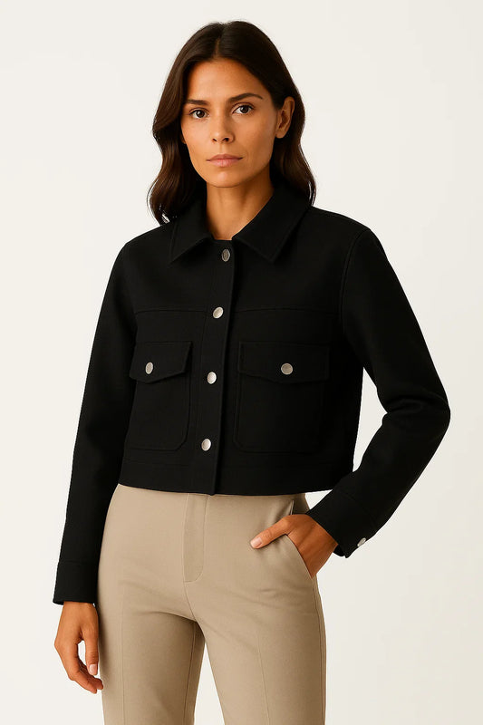 Women's Cropped Jacket Tweed Long Sleeve Elegant Coat