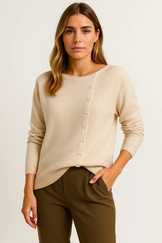 Women's Pullover Gray Cashmere Asymmetrical Button Detail Loose Fit Elegant Casual