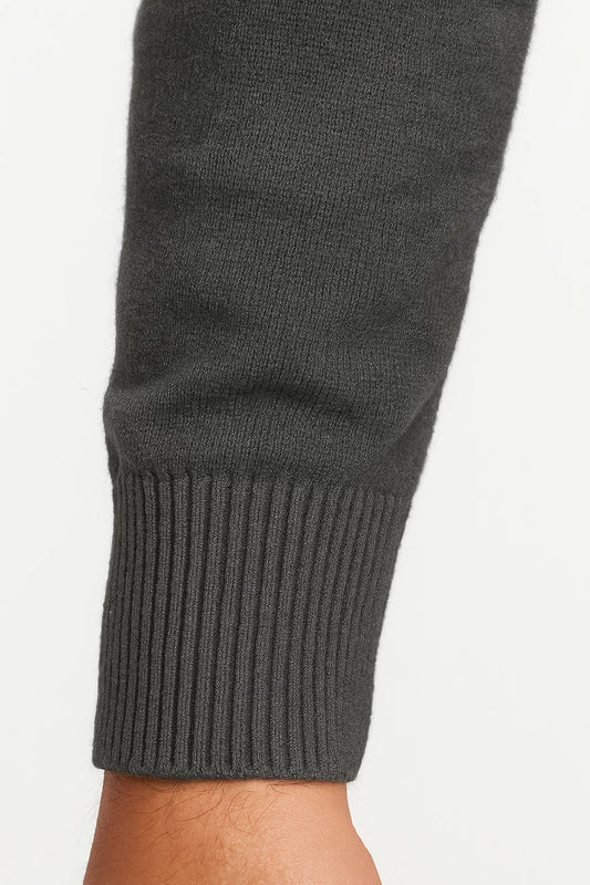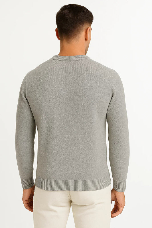 Men's Sweater Grey Knitted Pattern Soft Yarn Relaxed Fit Ribbed Round Neck