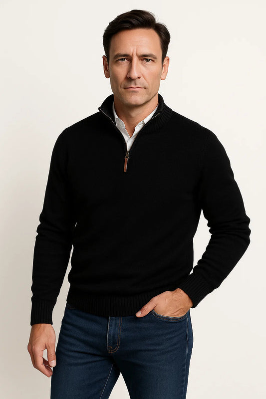 Men's Quarter Zip Sweater Cotton Blend Classic Fit Minimalist Design