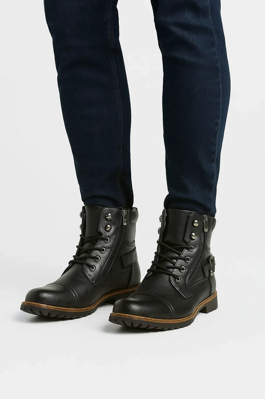 Men's Leather Boots Premium Leather Lace-up Durable Design