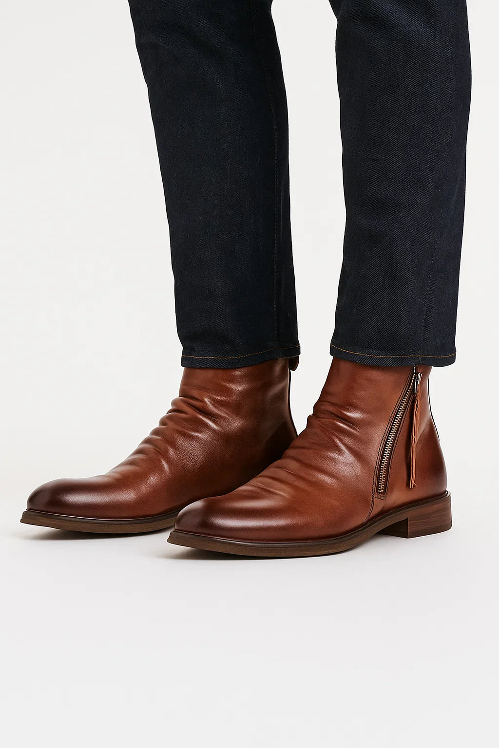 Step into sophistication with these Men's Chelsea Boots crafted from genuine leather. Designed to combine style and comfort, these boots are perfect for both casual and formal occasions. The classic Chelsea boot design ensures a timeless look, while the meticulous craftsmanship guarantees durability and a comfortable fit for all-day wear. Elevate your footwear collection with these versatile boots that reflect your refined taste.