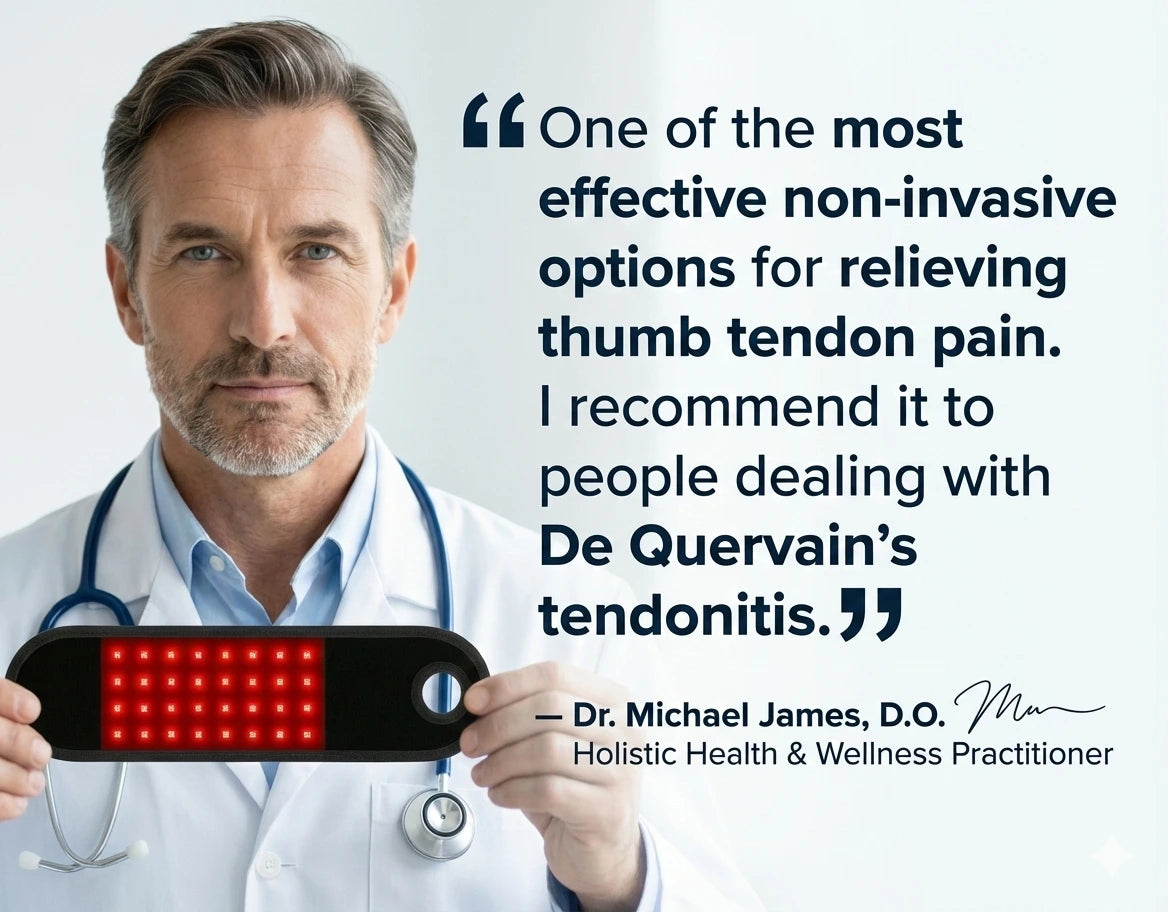 Yes. TendixPro™ uses red and infrared light to target inflammation and overuse in the thumb tendons, which are the primary cause of pain associated with De Quervain’s tendonitis. Most users notice improvement within the first 1–2 weeks of consistent use.